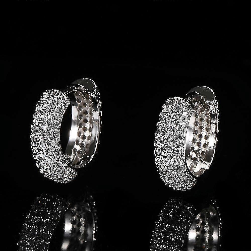 4k Gold Plated Sterling Silver Post Pave Cubic Zirconia Huggie Hoop Earrings For Women