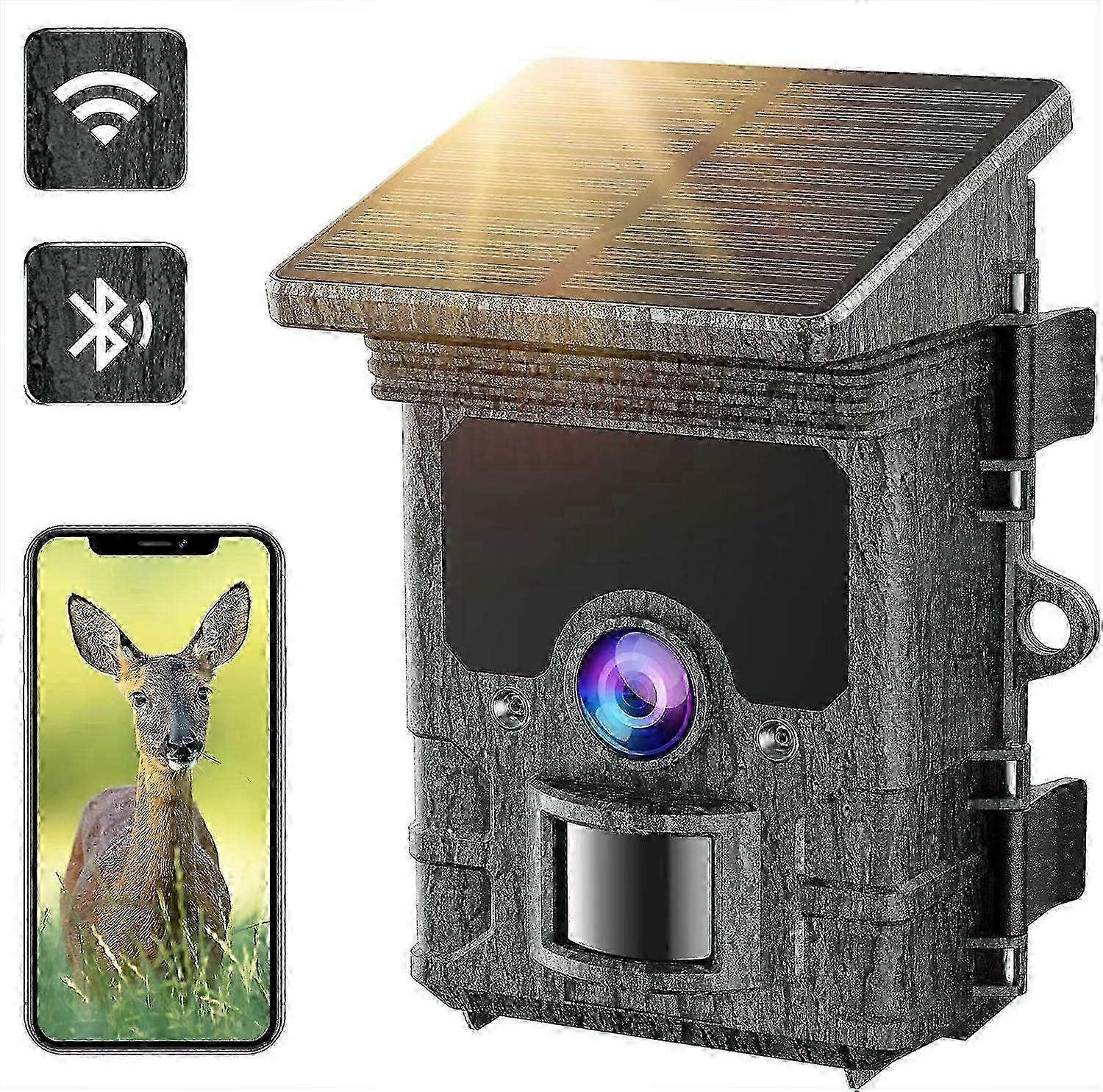 4K WiFi Bluetooth Solar Trail Camera 46MP Wildlife Trap Trail Cam Night Vision