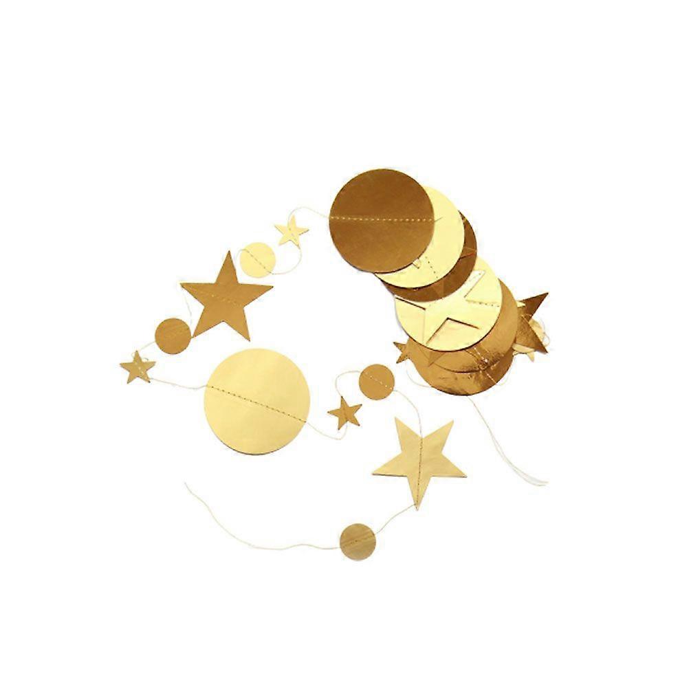 4M Paper Banner Round Star Garland Pendant Reflecting Surface Decoration Hanging Banner for Home Bar Wedding Birthday Party (Golden)