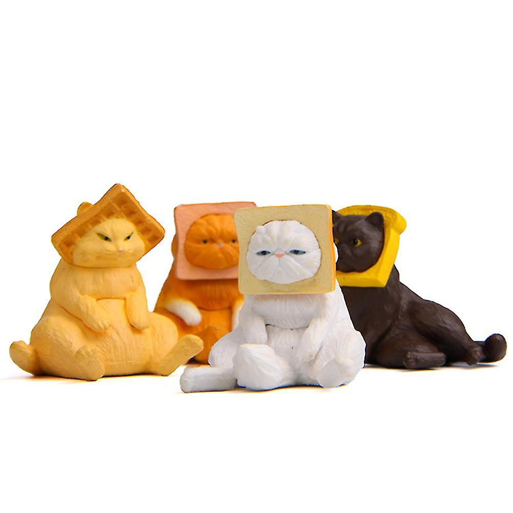 4pcs Cute Toast Cats Mini Figurine Kids Toy Diy Fairy Garden Cake Ornaments