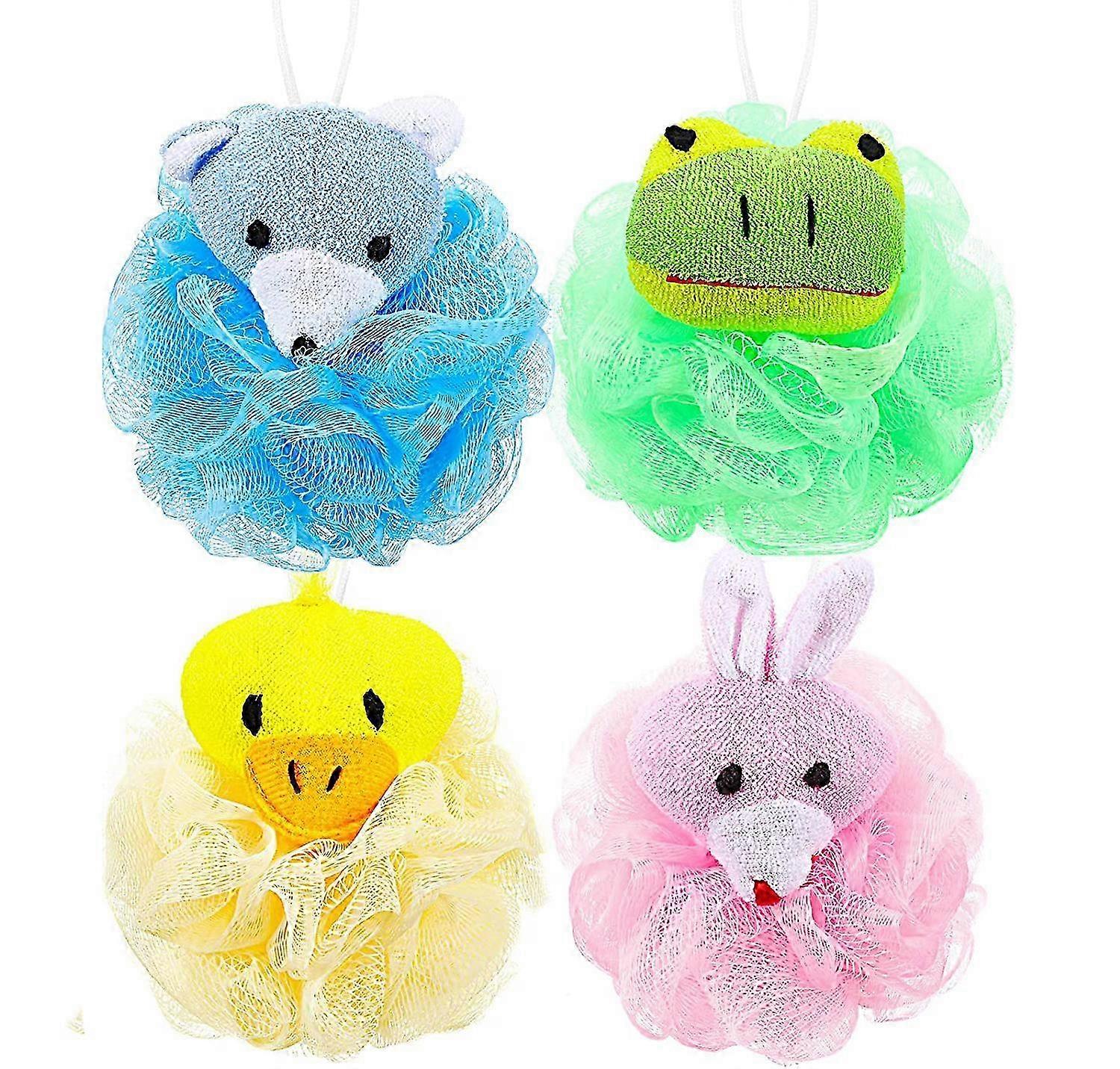 4PCS Cute Animal Bath Sponges, Colorful Cartoon Shower Scrubbers with Hooks
