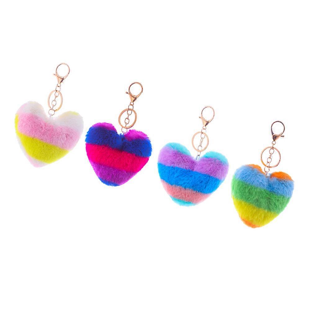 4pcs Plush Heart Keychains Creative Key Holder Stylish Key Ring Key Decoration Small present for Girls Women