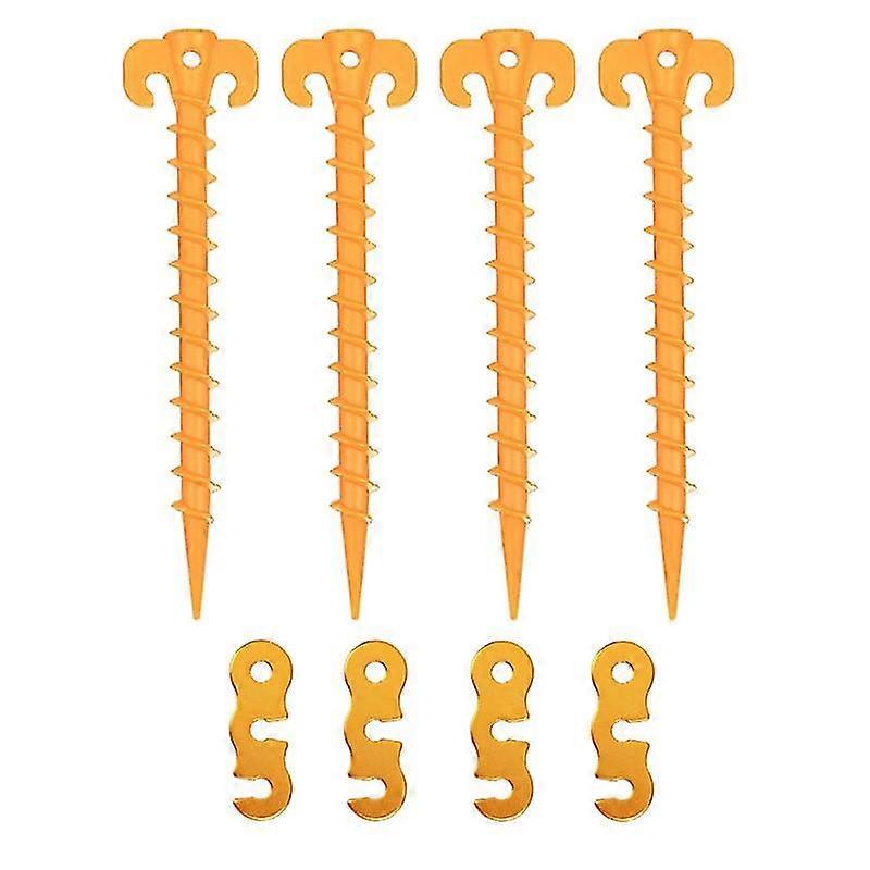 4pcs Camping Tent Pegs With Wind Rope Buckle Plastic Ground Anchors Pegs Spiral Design Tent Stakes Outdoors Tent Nails 20*4.5cm