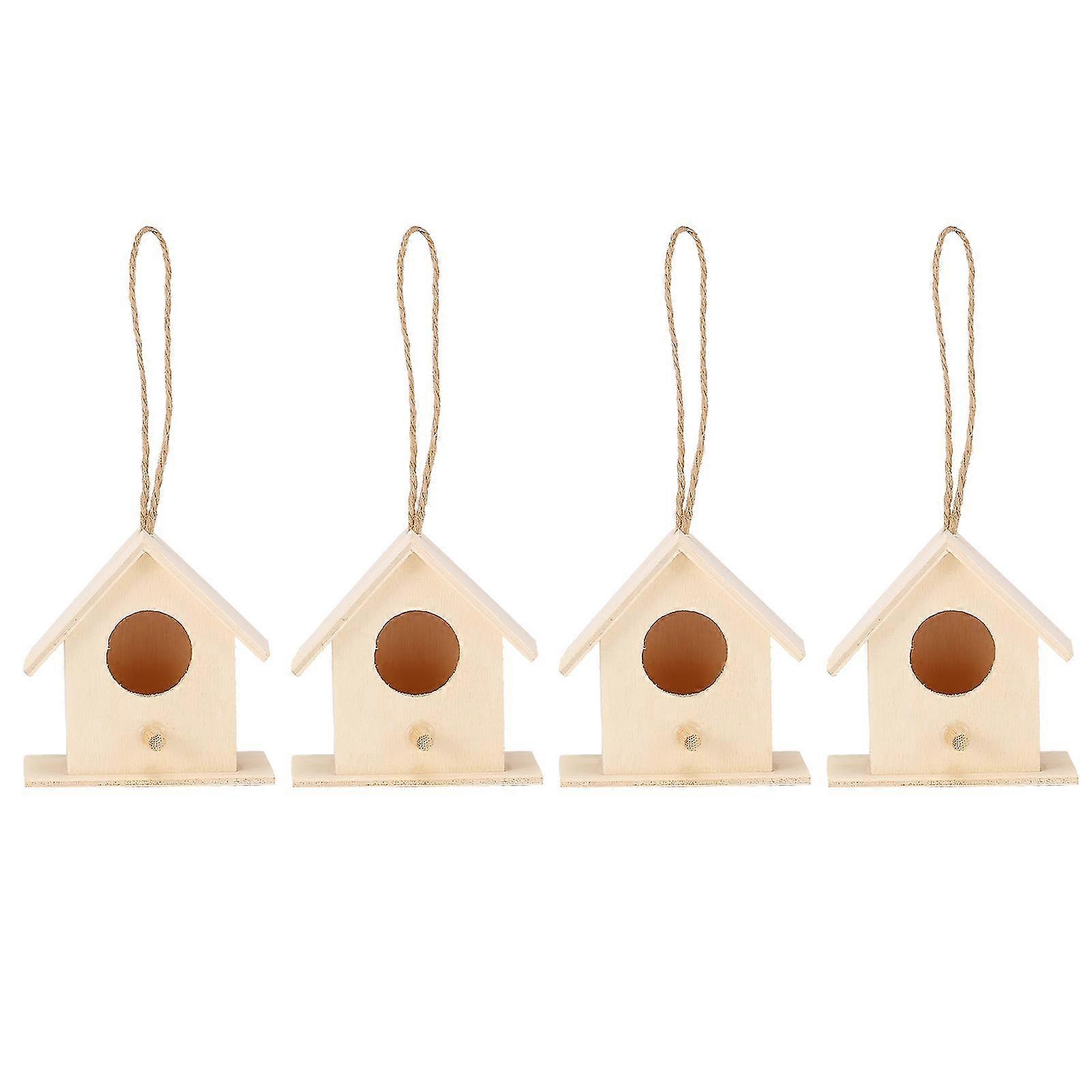 4PCS Wood Bird Nests Hanging Birdhouse Breeding Box Bird Cage for Garden DIY Decor-XinHan