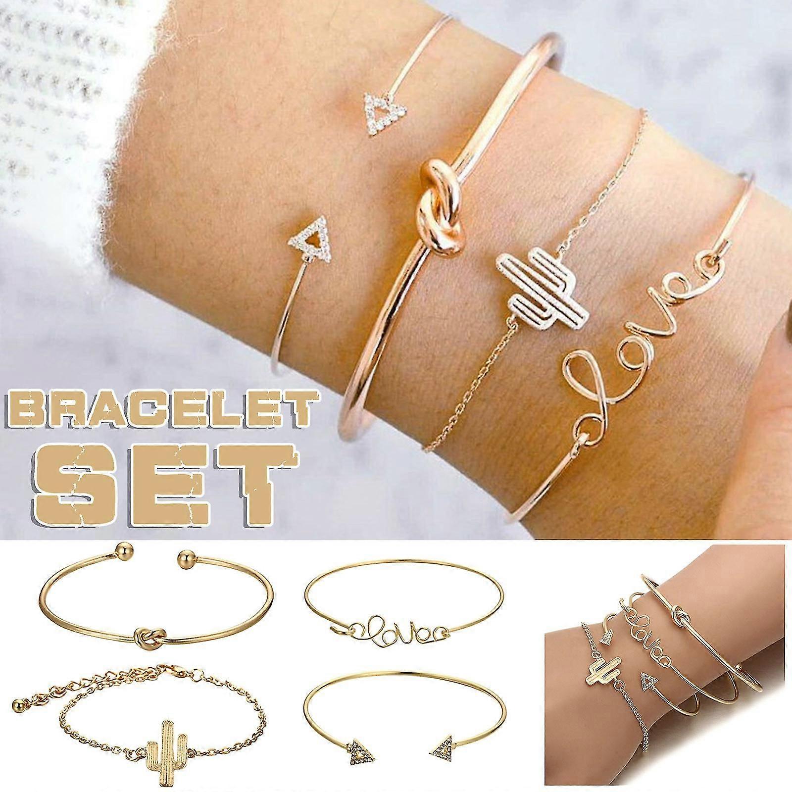 4pcs Elegant Women's Crystal Cactus Bangle Cuff Bracelet Jewelry Set