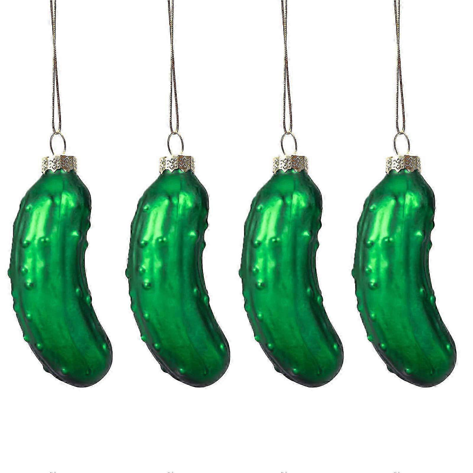 4pcs Glass Cucumber Christmas Ornaments Hanging Decorations Tree Pendants