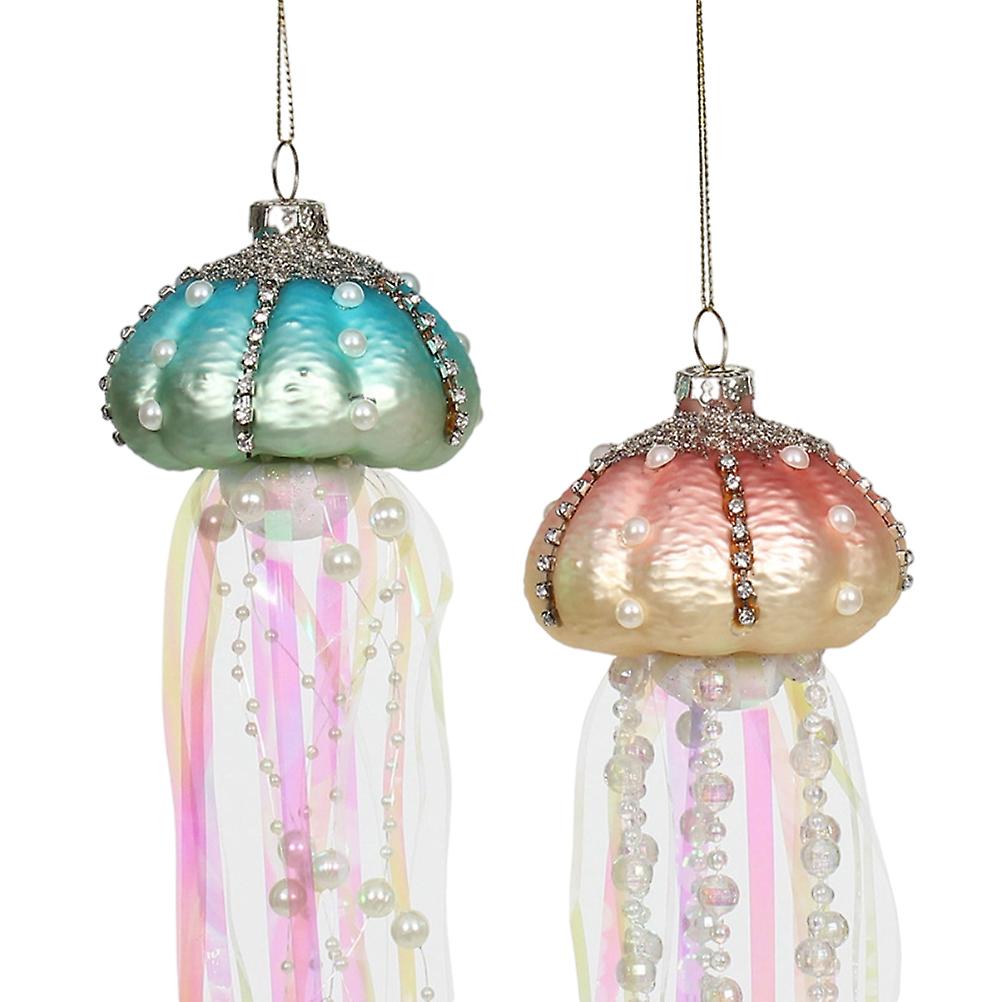 4PCS Glass Pearl Jellyfish Pendant Xmas Tree Hanging Ornaments for Home and Christmas Decorations