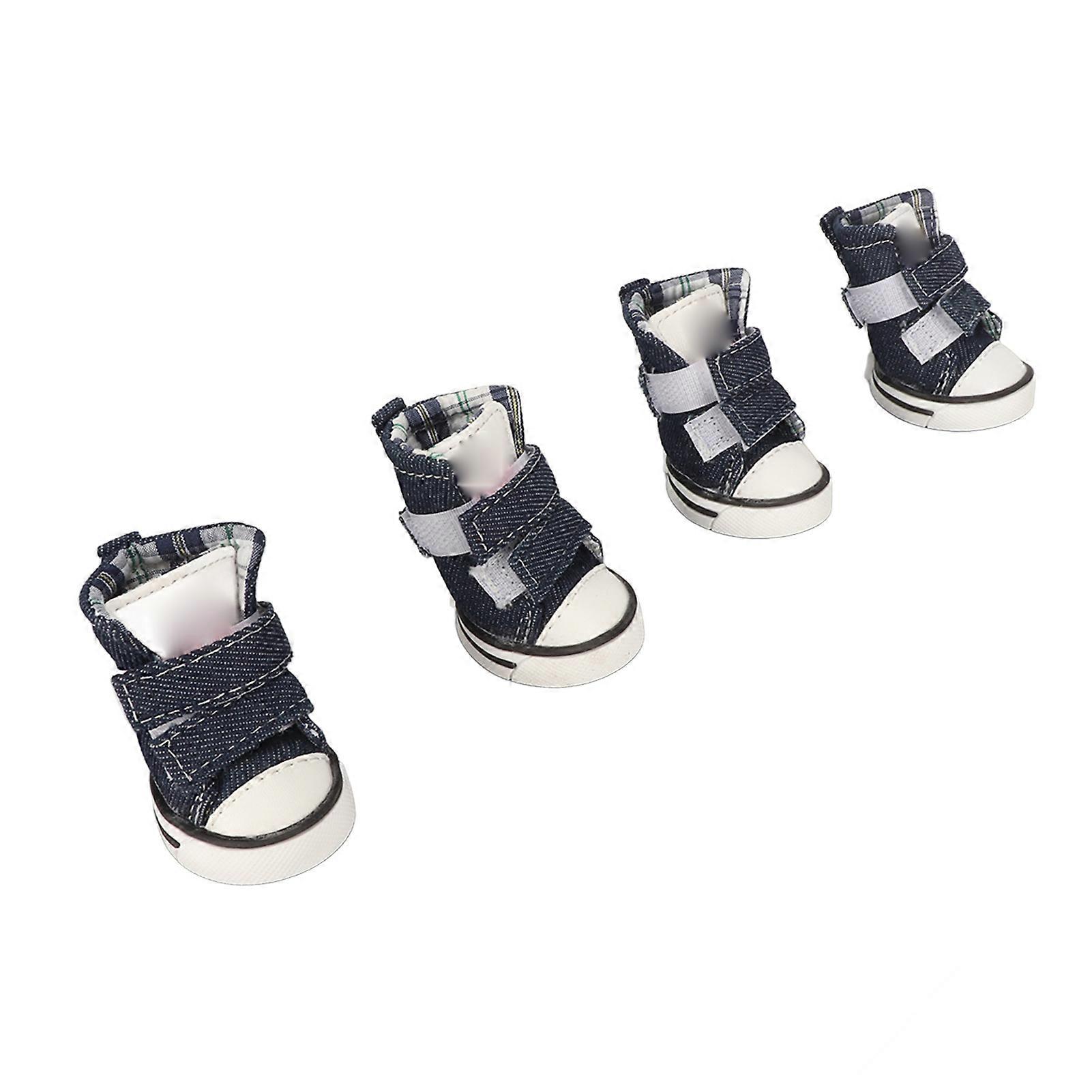 4pcs Canvas Puppy Shoes Stylish Cute Slip Resistance Breathable Comfortable Pet Paw Protector for Small Dogs Pets 2#