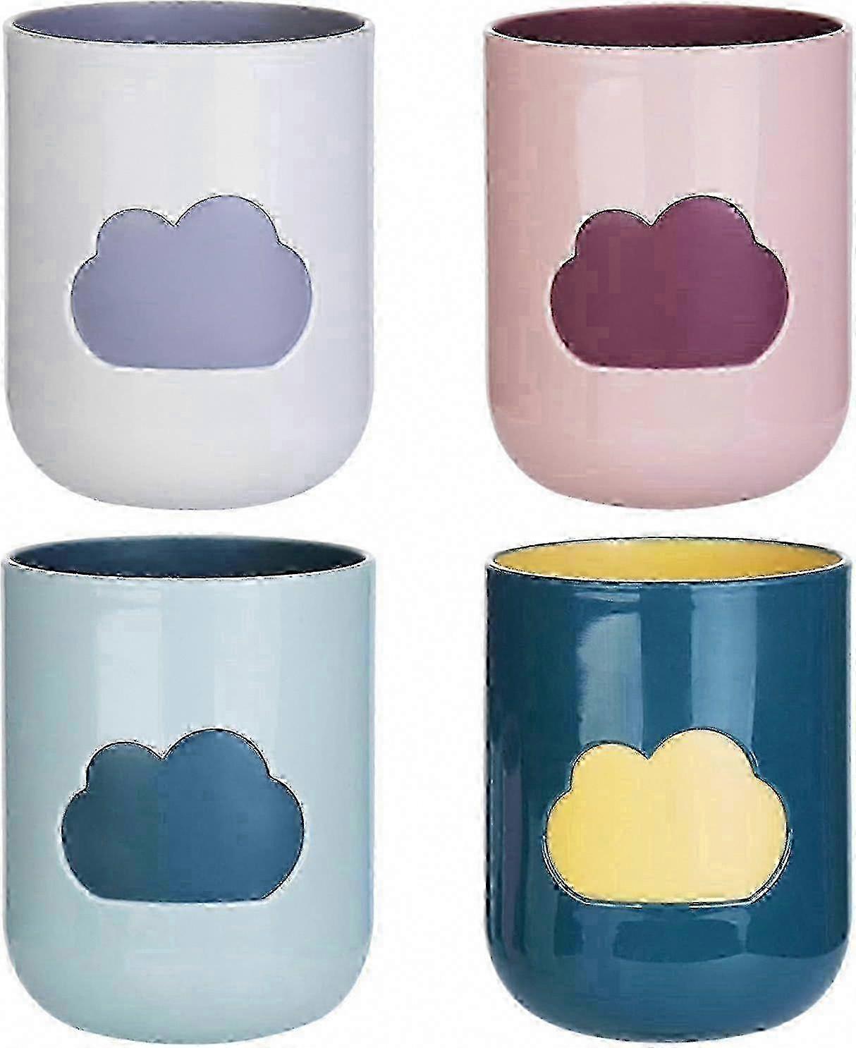 4pcs Cloud Design Toothbrush Holder & Reusable Mouthwash Cup Set for Bathroom Organization
