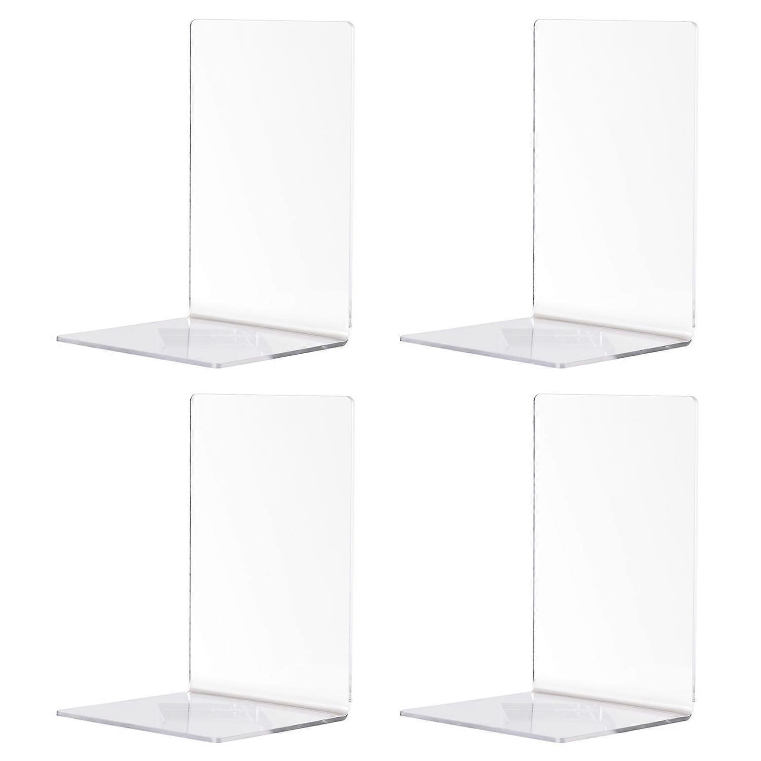 4Pcs Clear Acrylic Bookends L-shaped Desk Organizer Book Shelves Desktop Books Holder for CDs Magazi