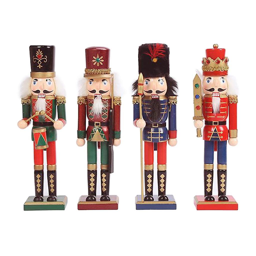 4pcs Christmas Nutcrackers Decoration 12'' Wooden Figure 4 Designs Tabletop