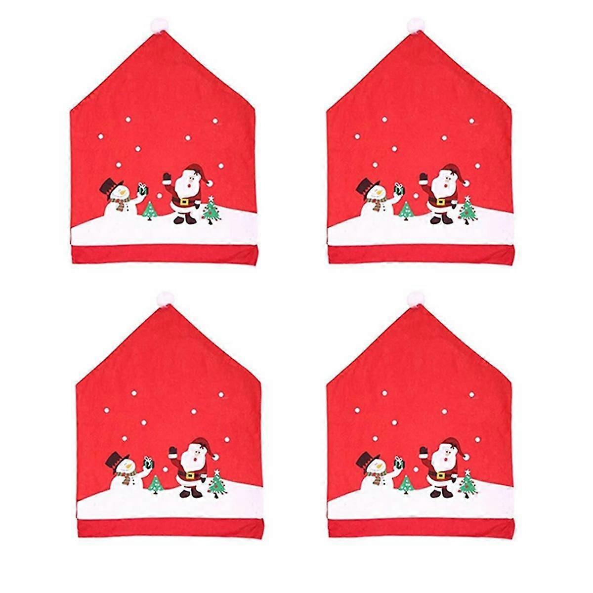 4PCS Christmas Chair Covers, Santa- & - Xmas Chair Back Covers Dining Chair Slipcovers