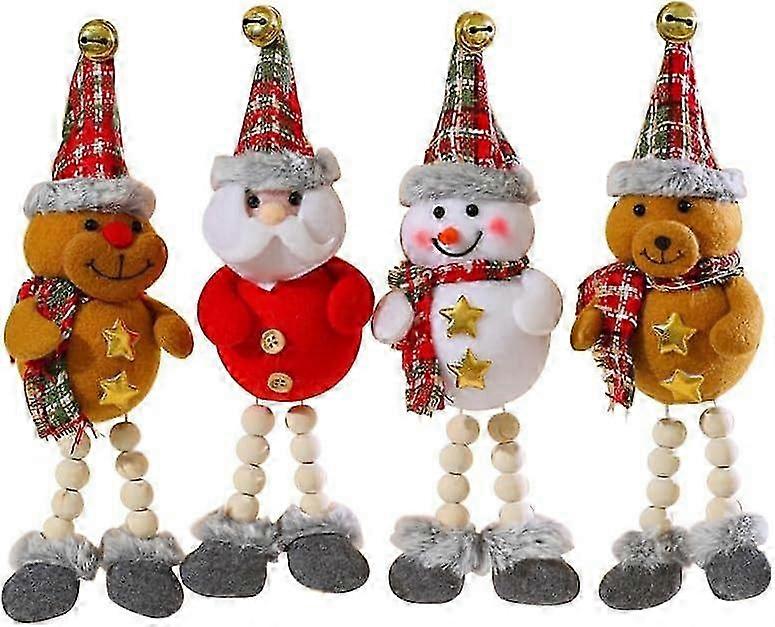 4PCS Christmas Doll Ornaments Elderly Snowman Deer and Bear Doll Hanging Decors with Bells