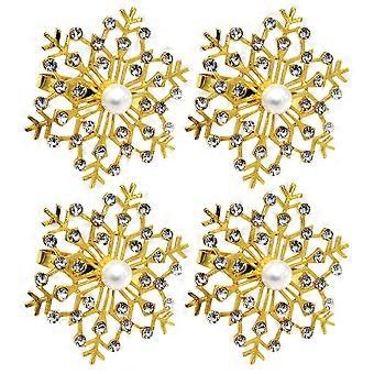 4pcsクリスマスラインストーンスノーフレークナプキンリングパールナプキンリングダイニングテーブルナプキンリング