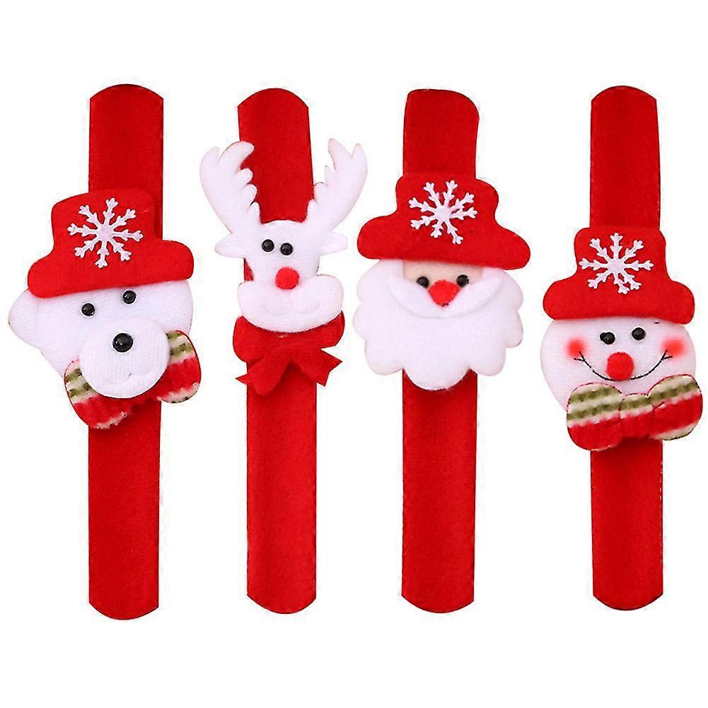 4pcs Christmas Wristband Bracelet Slap Wrist Bands Xmas Party Favors Bag Fillers Present For Children (santa Claus,snowman,reind