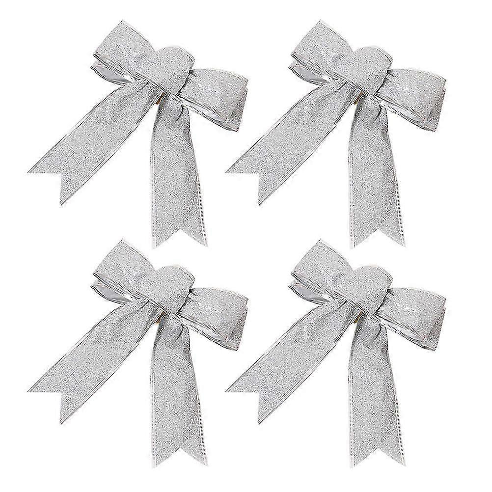 4pcs Christmas Ribbon Christmas Shiny Bowknot Accessories Ornaments (Silver)