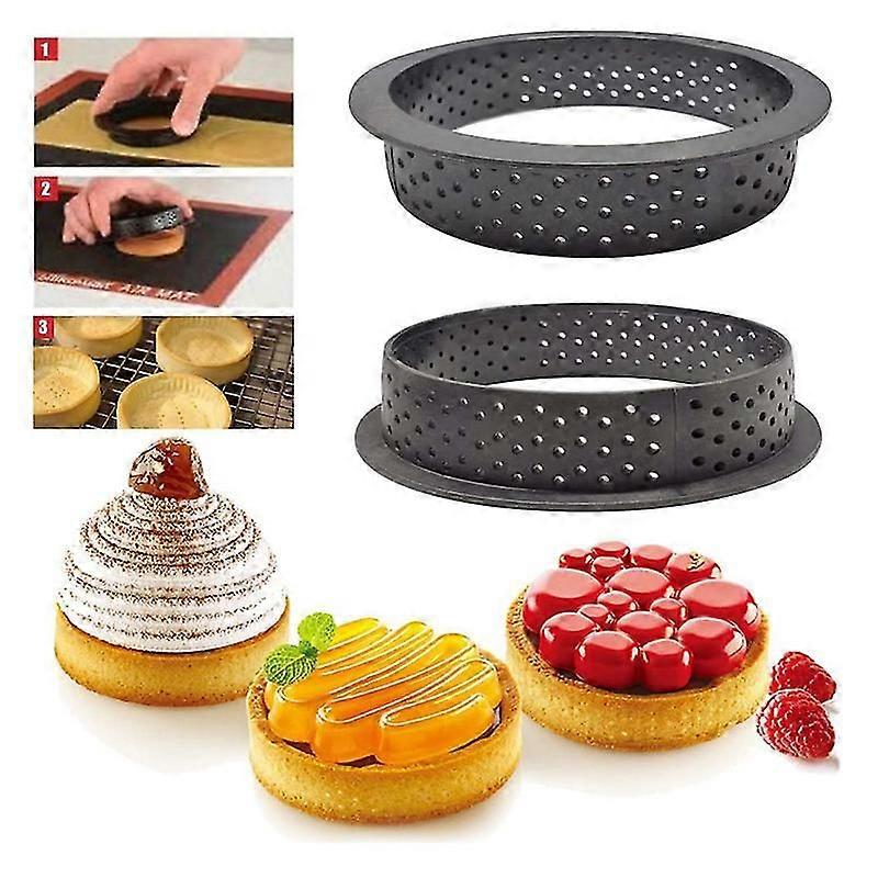 4pcs Cake Pan Tart Ring Perforated Round Mousse Circle