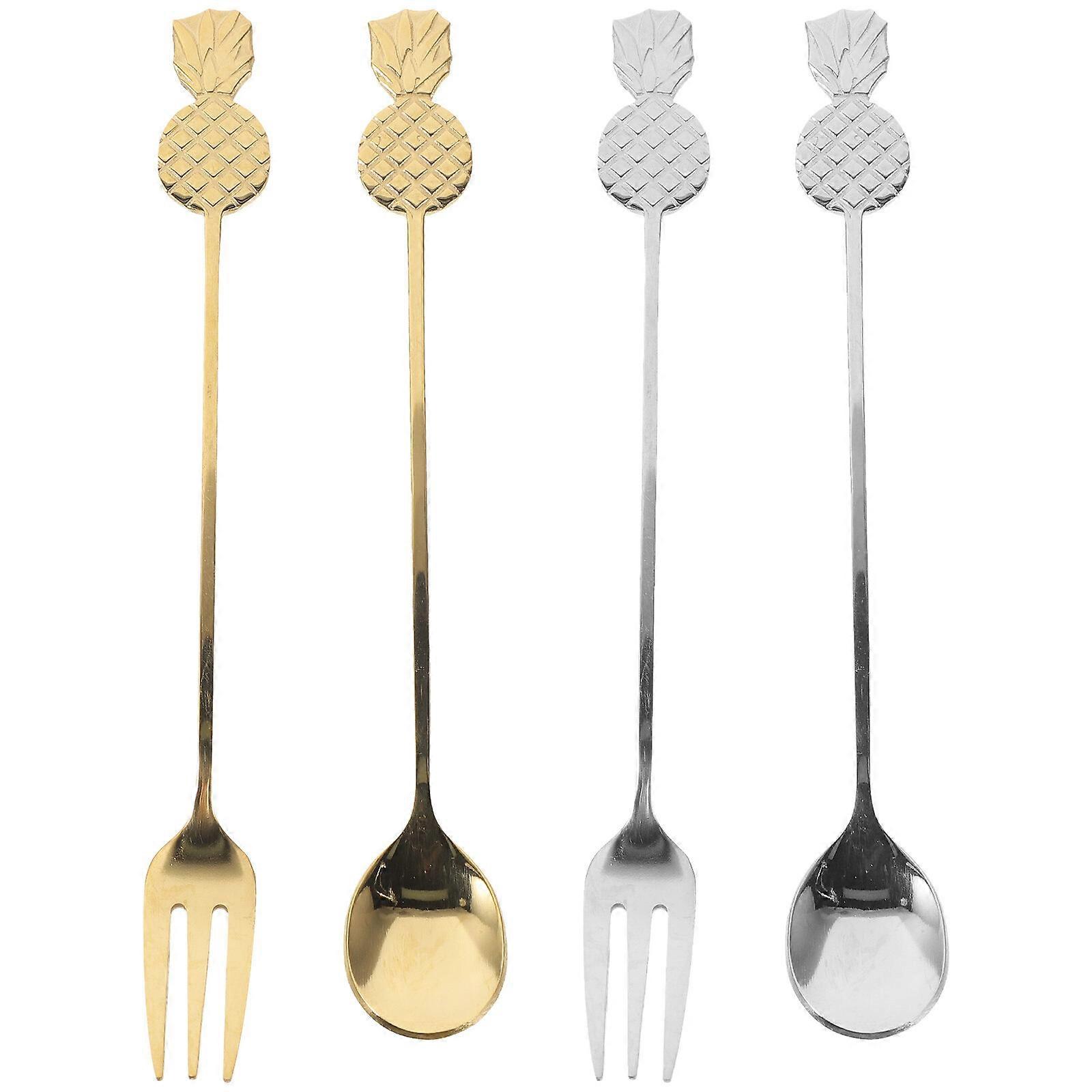 4pcs Coffee Mixing Spoon Coffee Spoon Pineapple Handle Fork Ice Cream Spoon Fork