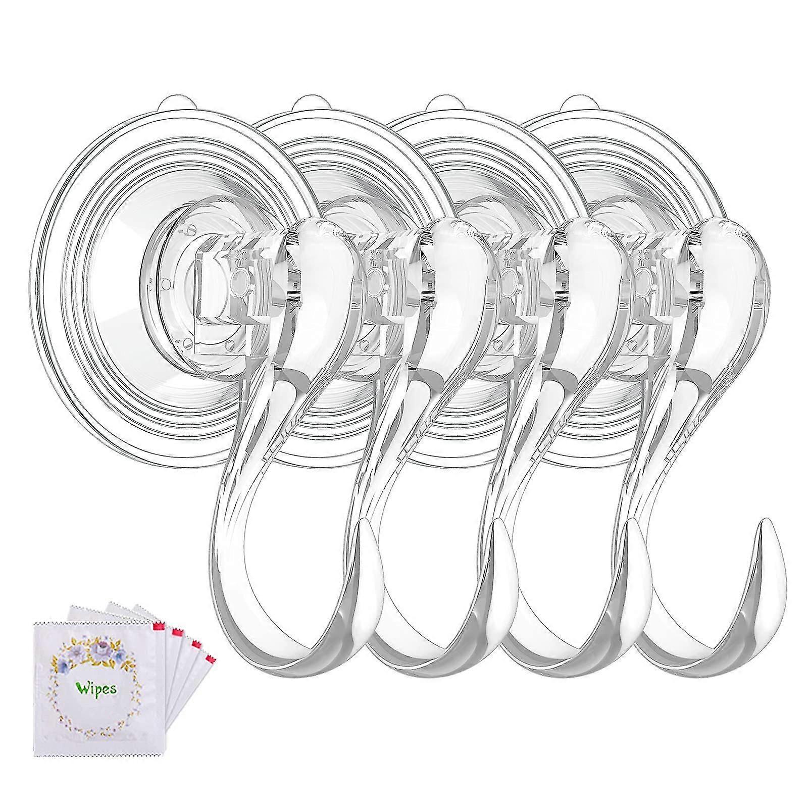 4pcs Suction Cup Hooks, Big Clear Removable Heavy Duty Suction Hooks With Wipes Strong Window Glass Door Kitchen Bathroom Shower Wall Suction Hangers