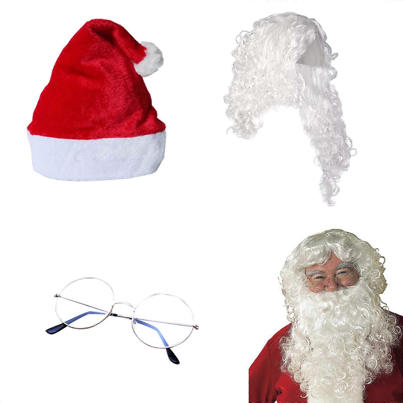 4pcs Santa Claus Beard, Wig, Hat, Glasses Set for Fancy Dress Xmas Party