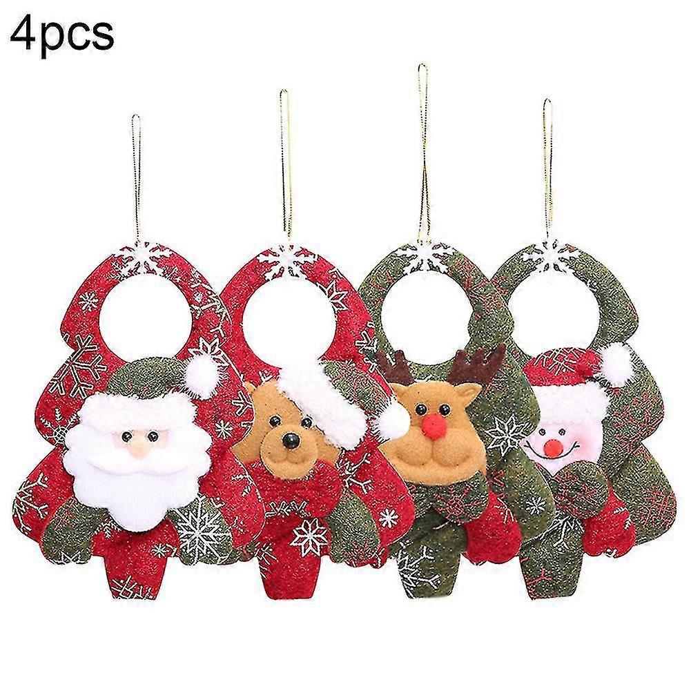 4pcs Santa Claus Elk Snowman Bear Dolls Pendants Xmas Tree Hanging Decor For New Year Party Birthday Xmas Gift For Kids