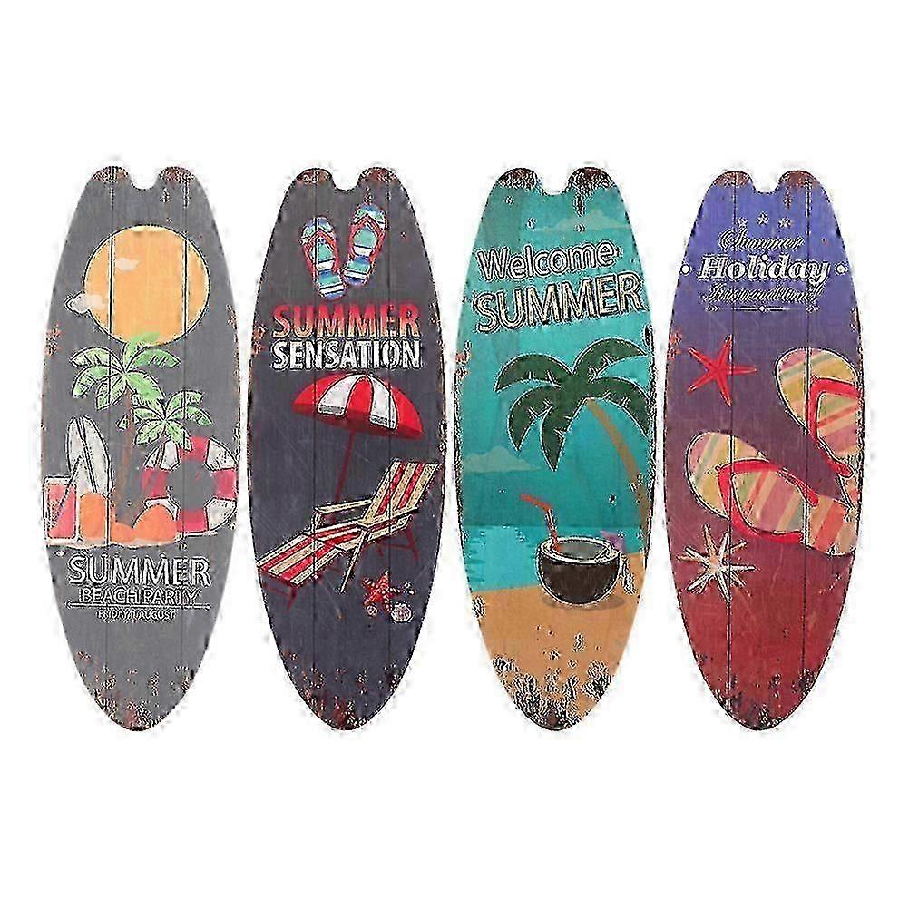 4pcs Surfboard Decors Surfboard Beach Signs Wall Hanging Decors Indoor Wall Wooden Sign