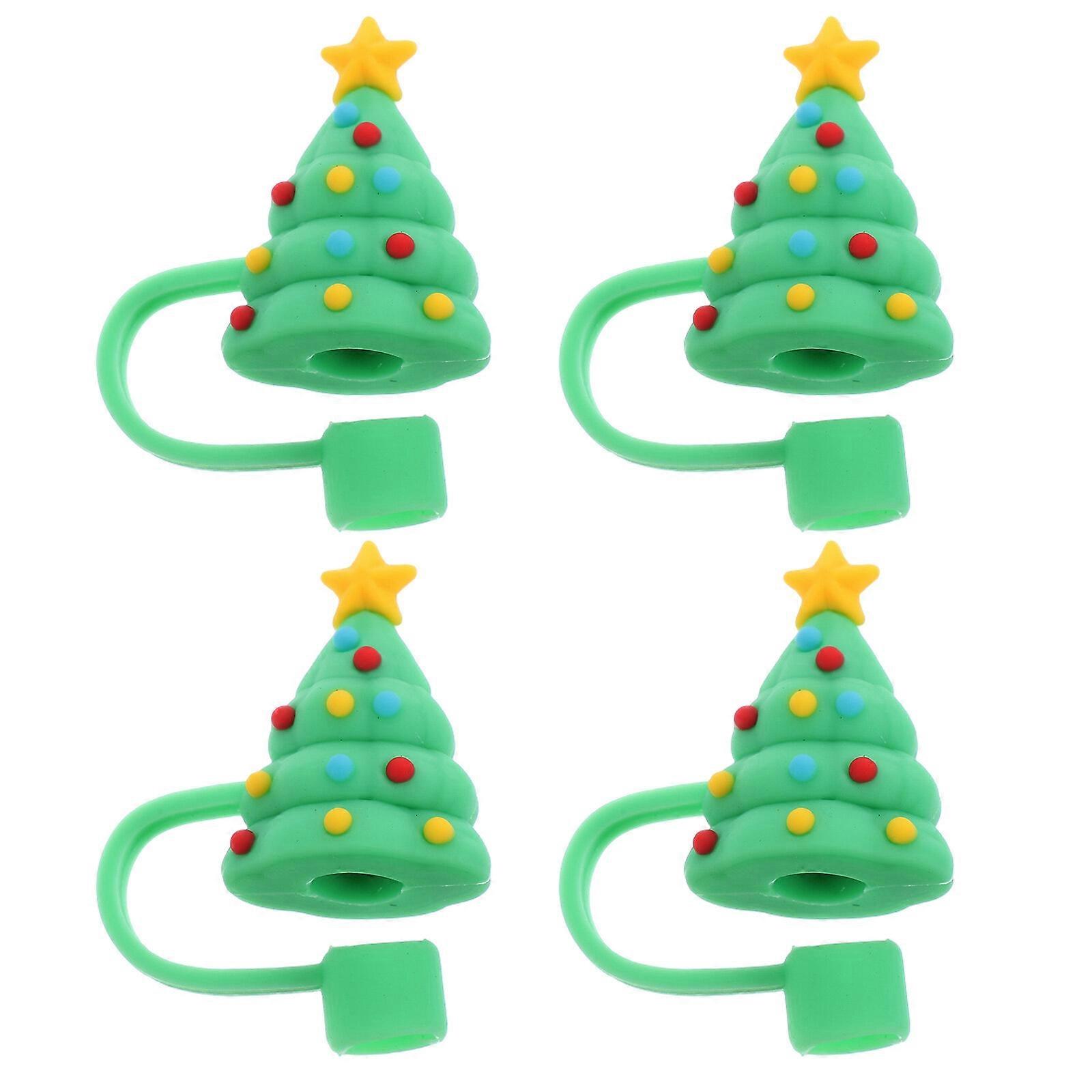 4Pcs Silicone Straw Tips Cover Creative Christmas Straw Plug Portable Cute Straw Plugs Caps