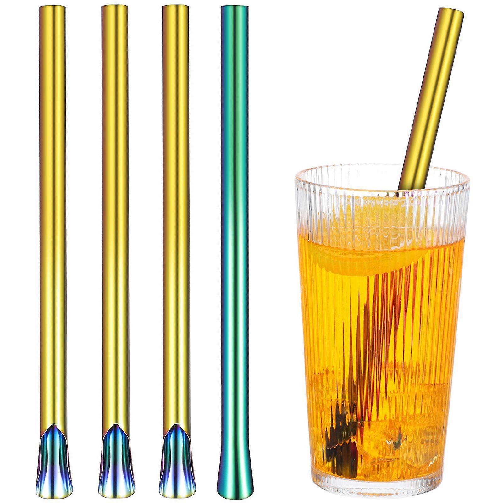 4pcs Stainless Steel Straws Reusable Drinking Straw Creative Stirrer for Milk Tea Smoothie (Colorful, Mixed Style)
