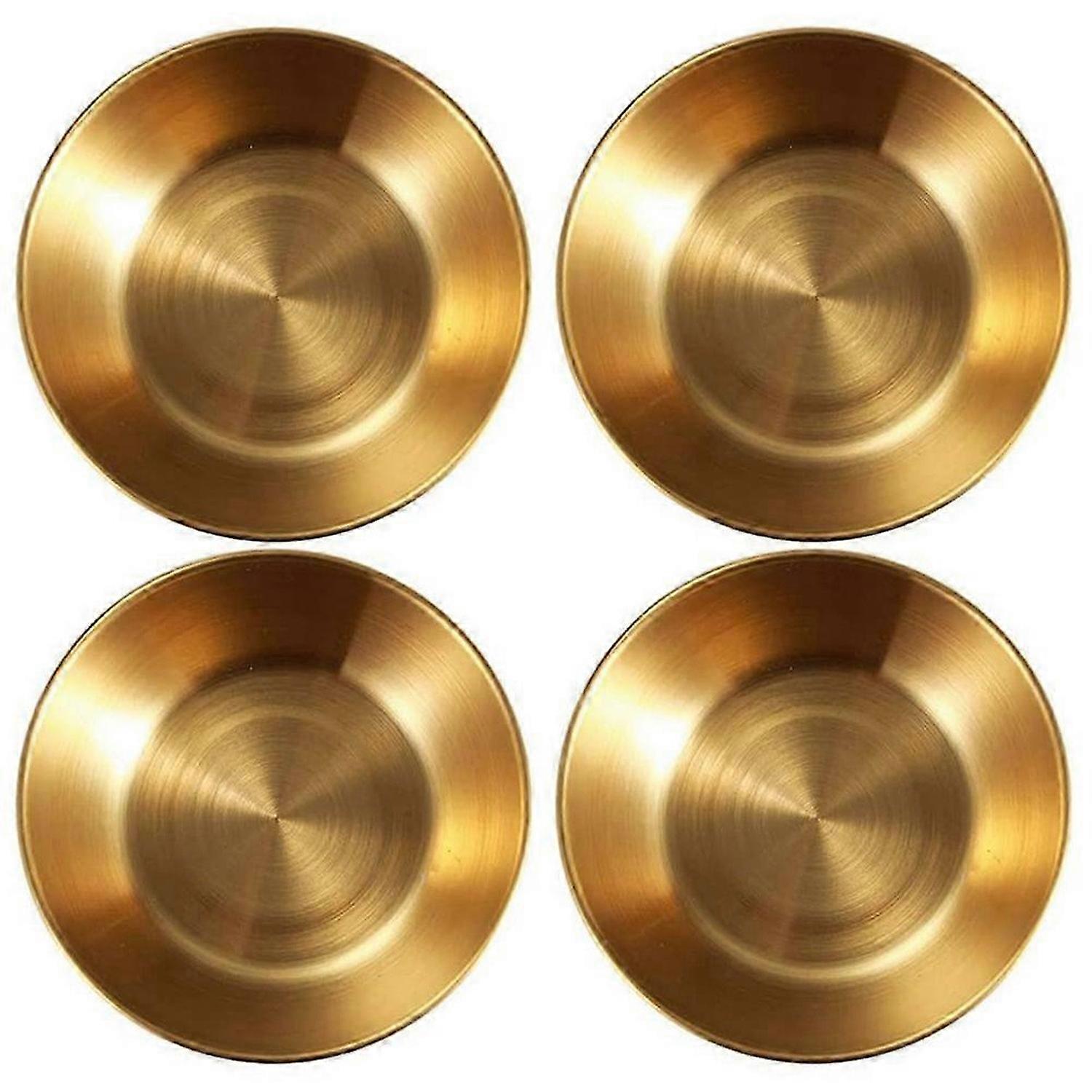 4PCS Stainless Steel Round Small Dish Golden Sauce Seasoning Dish Home Restaurant Kitchen Soy Sauce Dish