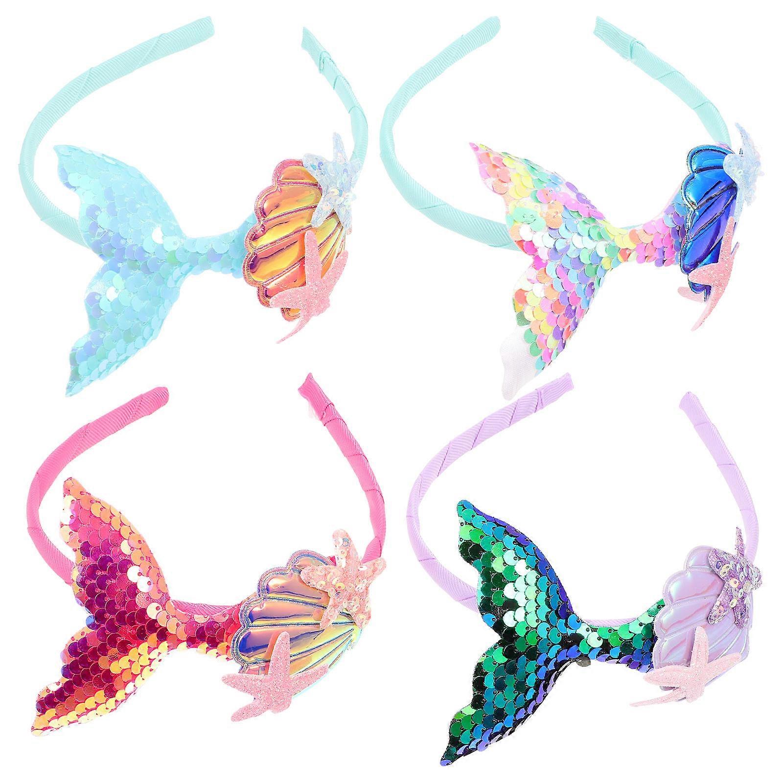4PCS Sequin Mermaid Hair Bands with Glitter Premium Quality Party Hair Decor Headbands