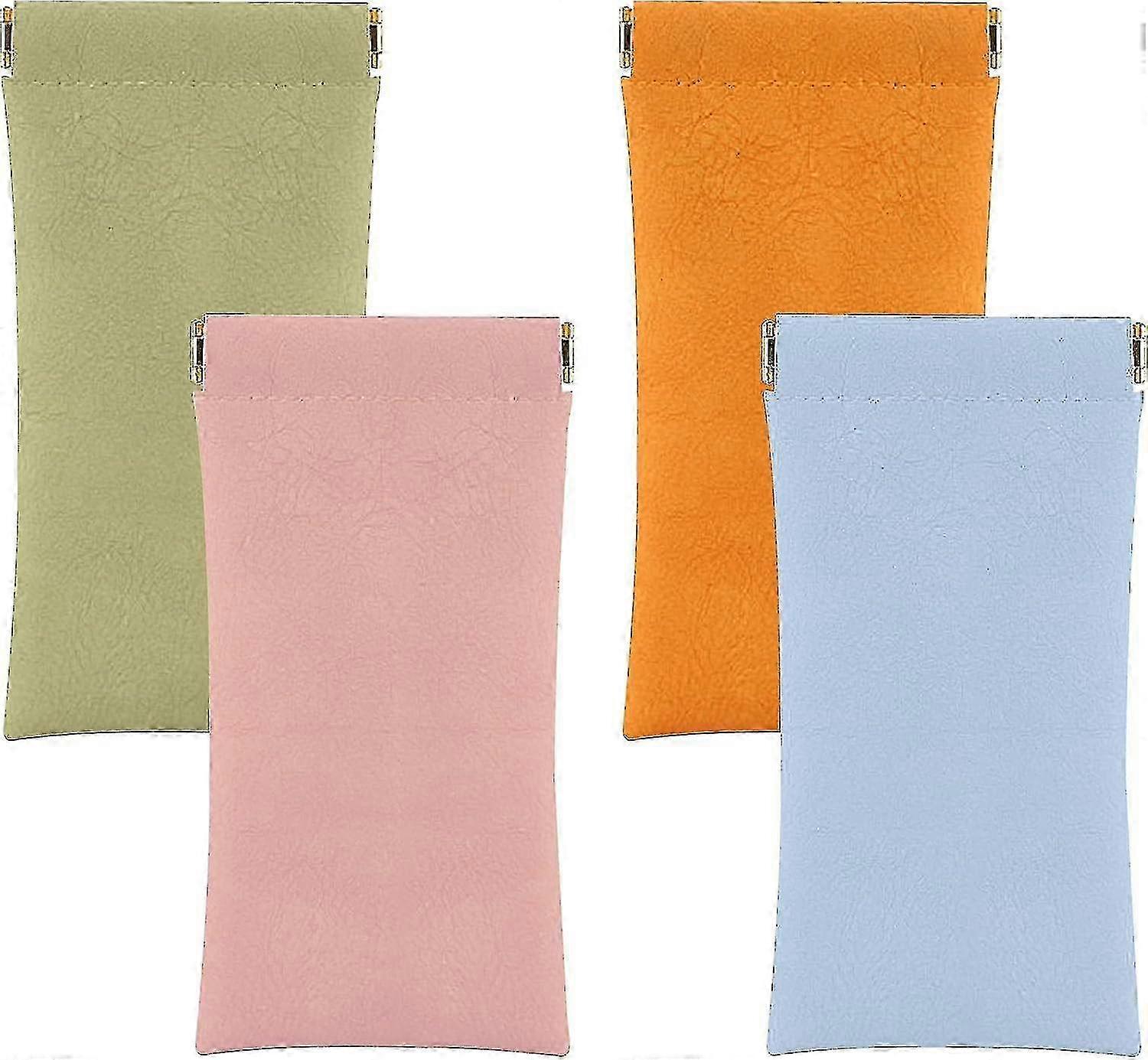 4pcs Soft Eyeglass Case Set - PU Leather, Auto Closure, Multi Colors