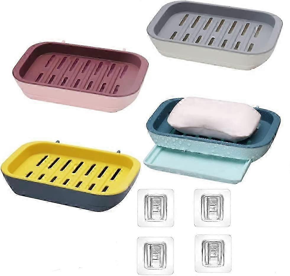 4PCS Soap Dish No Drilling RequiredSoap Dish,Soap Dish,Shower Soap Box for Kitchen Bathroom Sponge Soap Dish,Soap Drainer with 4 Seamless Hooks