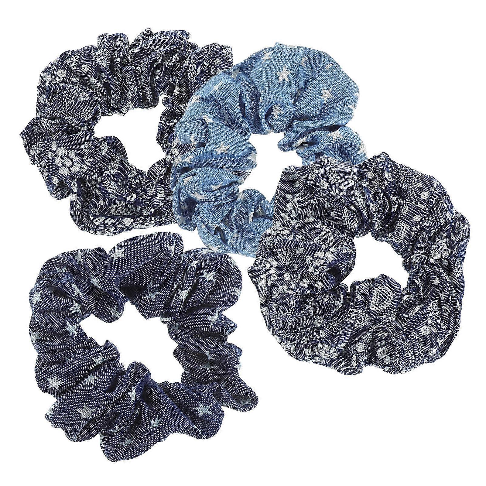4PCS Denim Hair Scrunchies Elastic Ponytail Holders for Women Stretchy Hair Ties with Chic Design for Daily Use