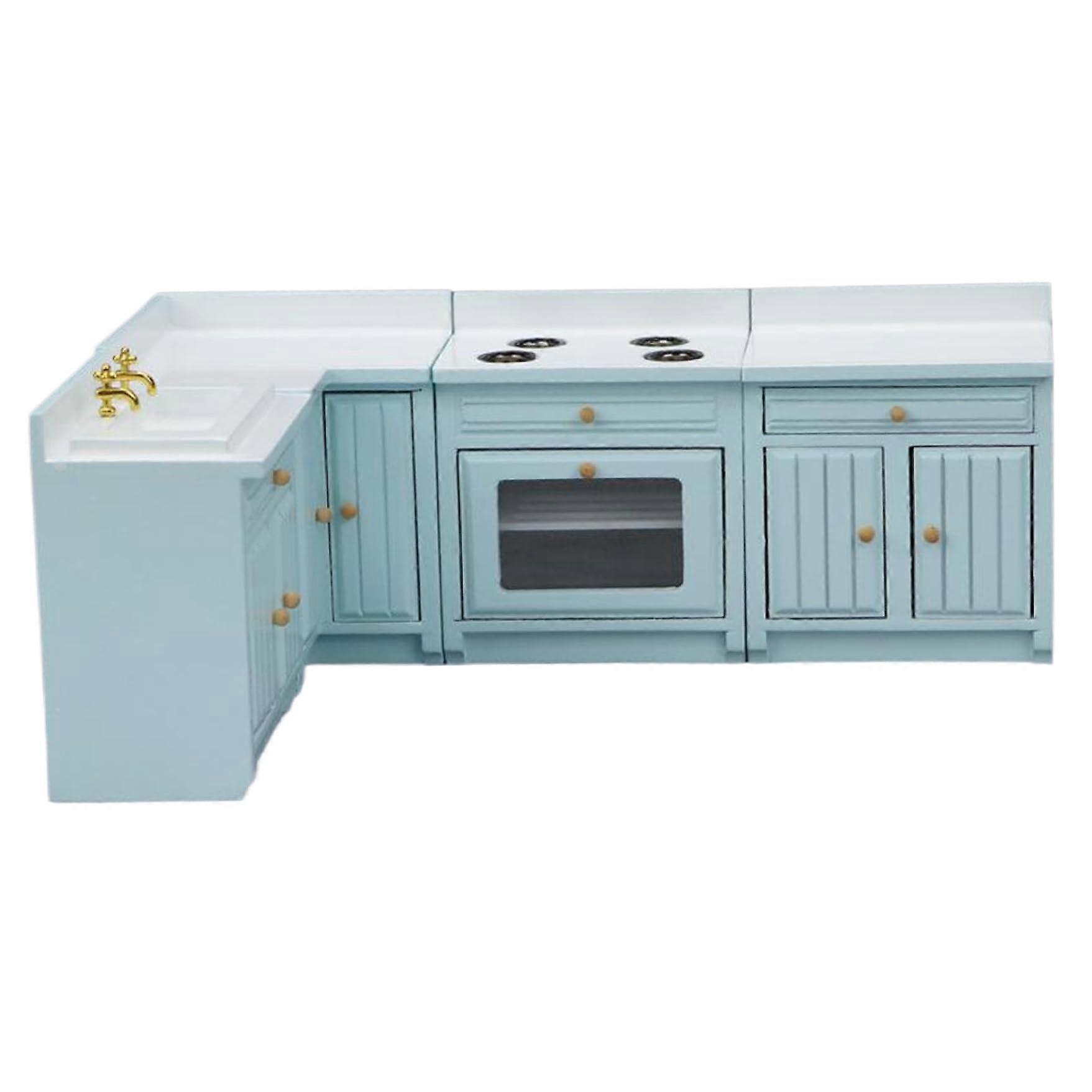 4pcs Dollhouse Kitchen Set, Wooden 1/12 Toy StoveSink Cabinet Cooking Table Set, Dollhouse Furniture Delicate Model Decor Realistic Accessory