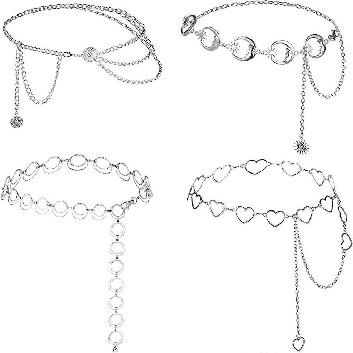 4Pcs Trendy Waist Chain Ladies Body Chains for Women and Girls