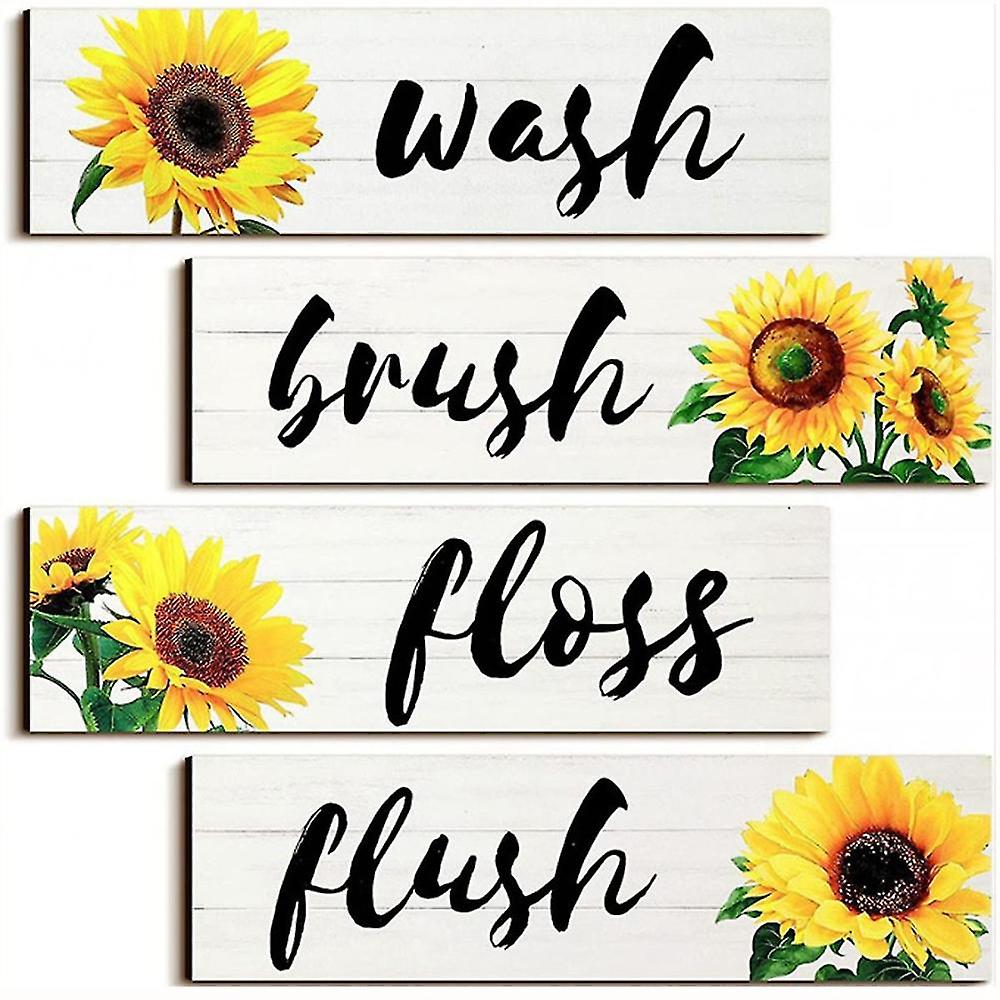 4pcs Bathroom Sign Wall Wooden Sign Bathroom Slogan Decoration D Section