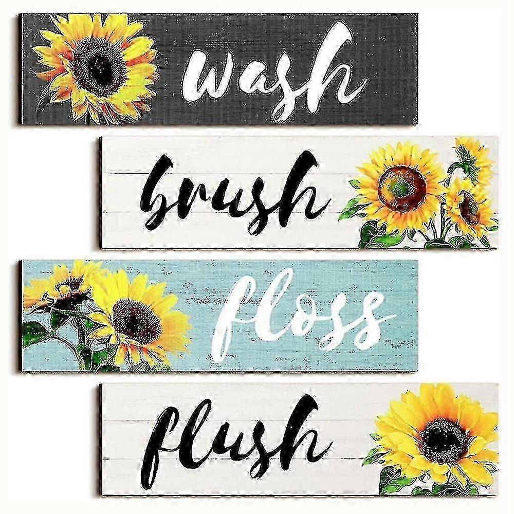 4pcs Bathroom Sign Wall Wooden Sign Bathroom Slogan Decoration A Section