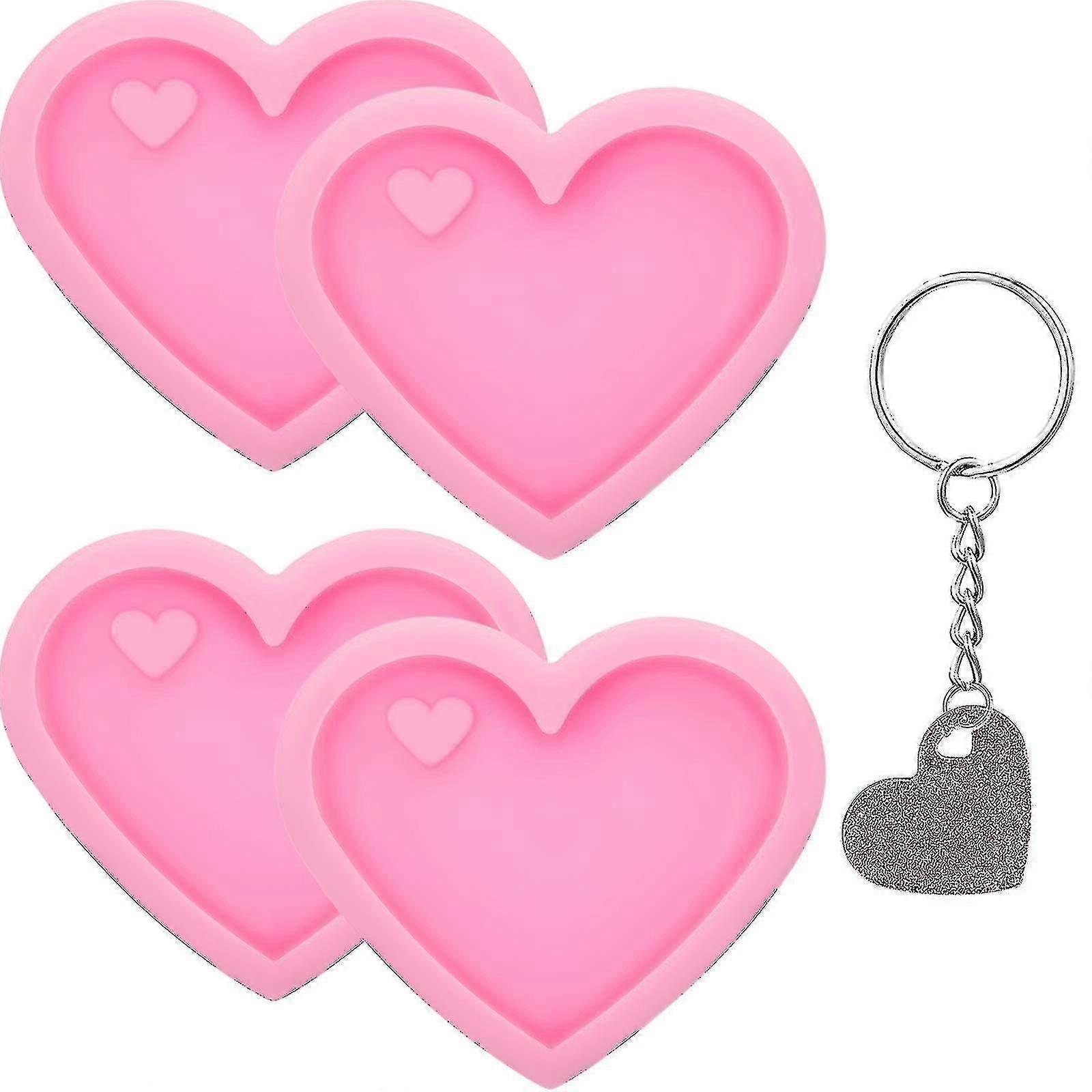 4pcs Valentine's Day Heart Shape Love Keychain Silicone Mould With Hole Chocolate Candy Mould Silicone Fondant Baking Mold