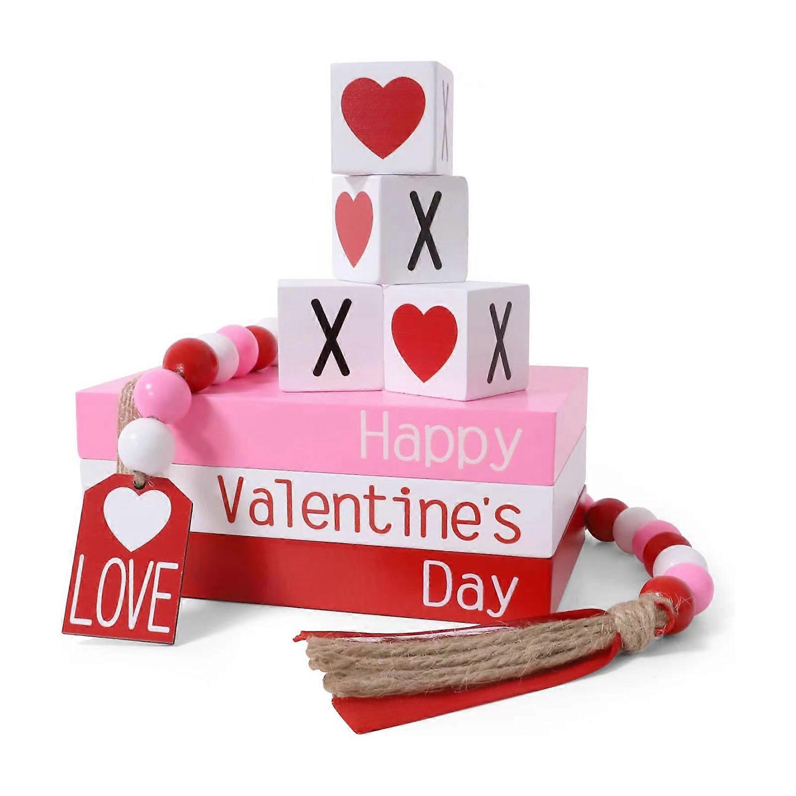 4PCS Valentine Tiered Tray Decor Pink Theme Table Sign Wood Decorations for Centerpieces Decoration