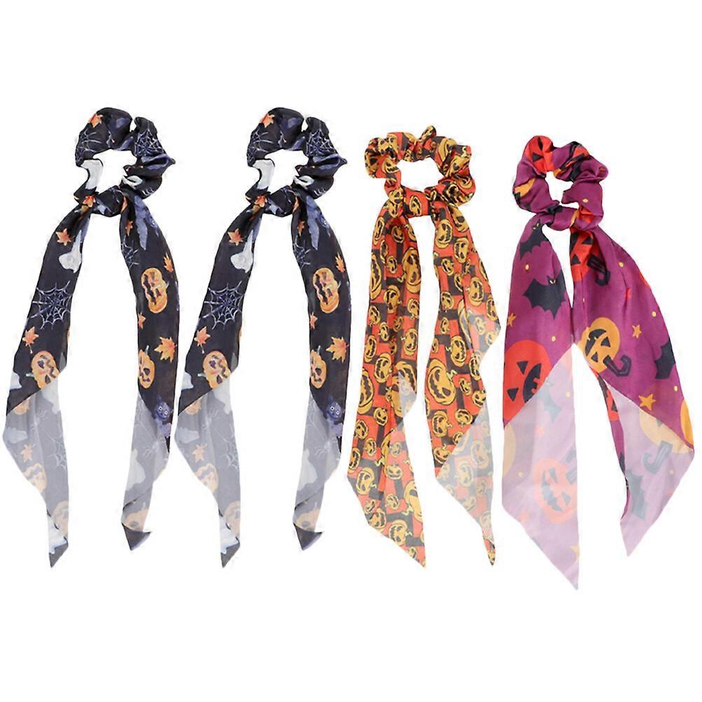 4pcs Halloween Hair Scrunchies Ribbon Scrunchies Ponytail Holders Hair Accessory