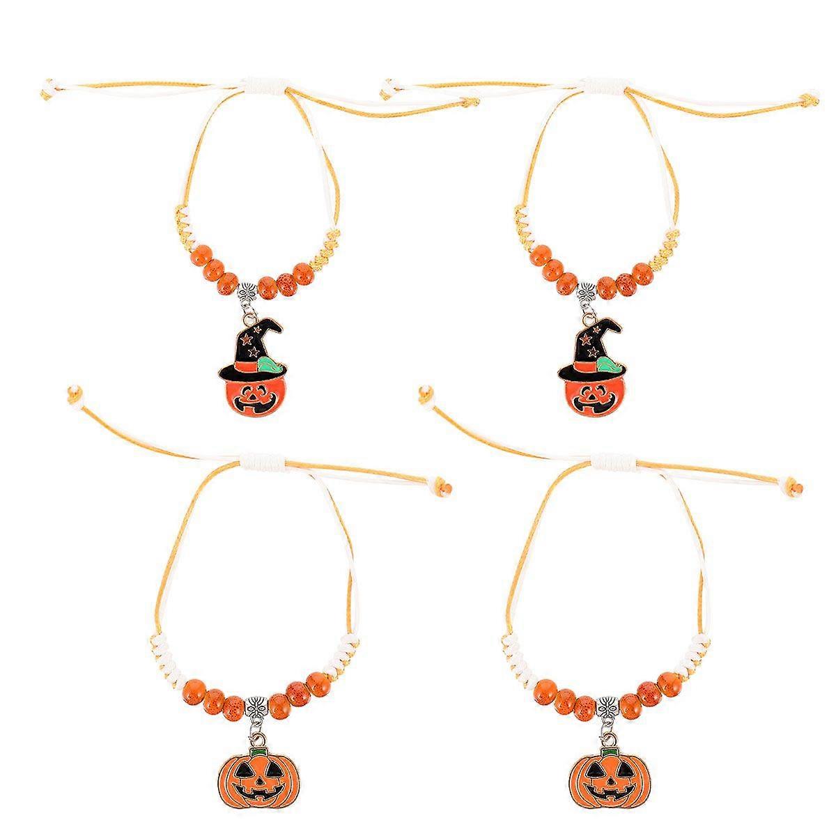 4pcs Halloween Theme Decoration Pumpkin Pendants Bracelets Jewelry Accessories