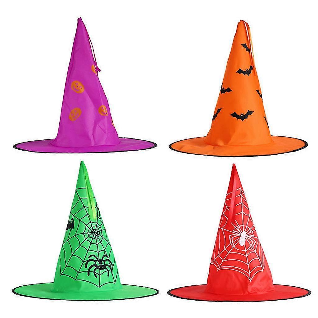 4pcs Halloween Led Lighted Witch Hat Cute Pumpkin Spider Web Bat Print Hanging Glowing String Lamp Cap Pendant Outdoor Garden Yard Tree Decoration