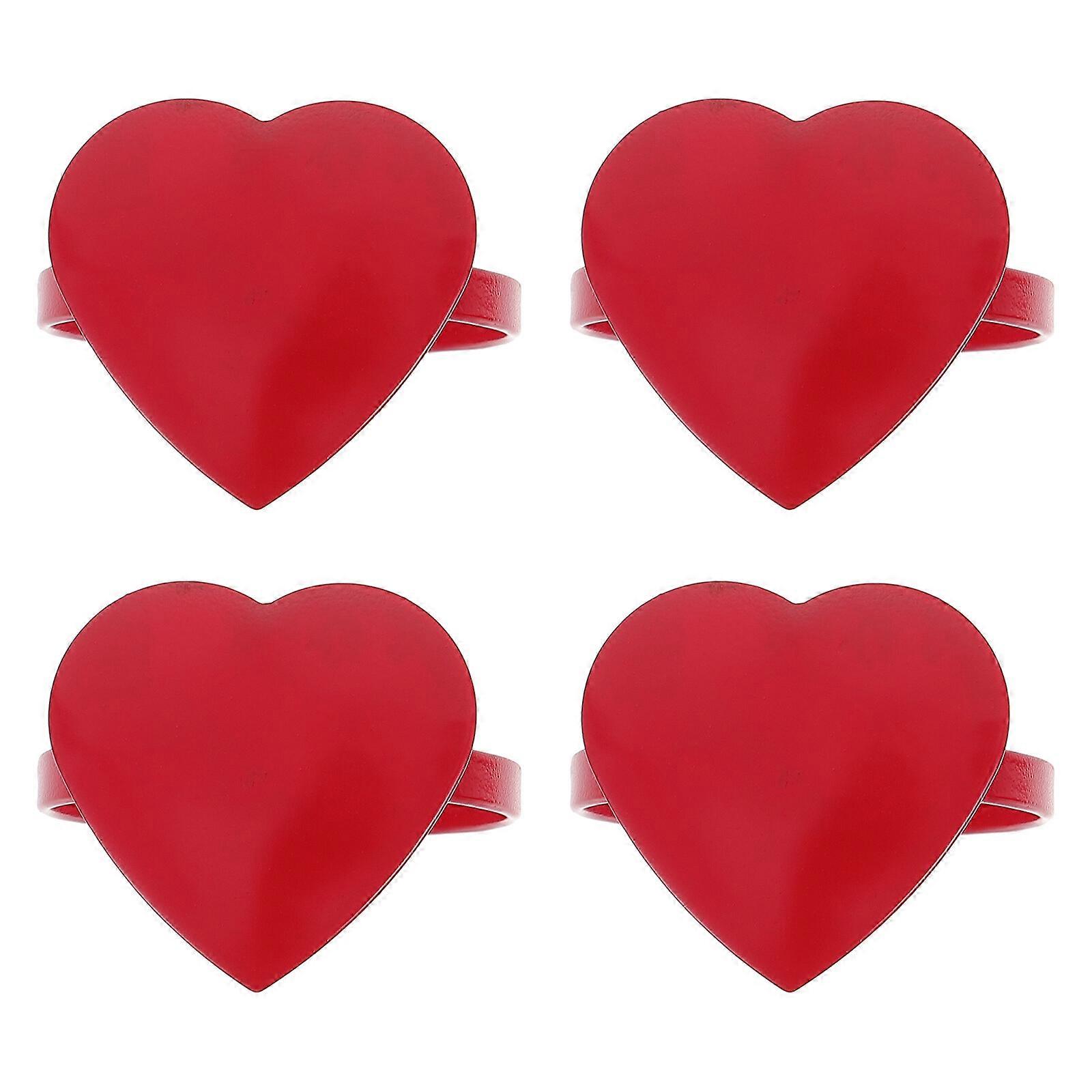 4pcs Heart Shaped Napkin Rings Alloy Dinner Napkin Buckles Restaurant Decor(Red)
