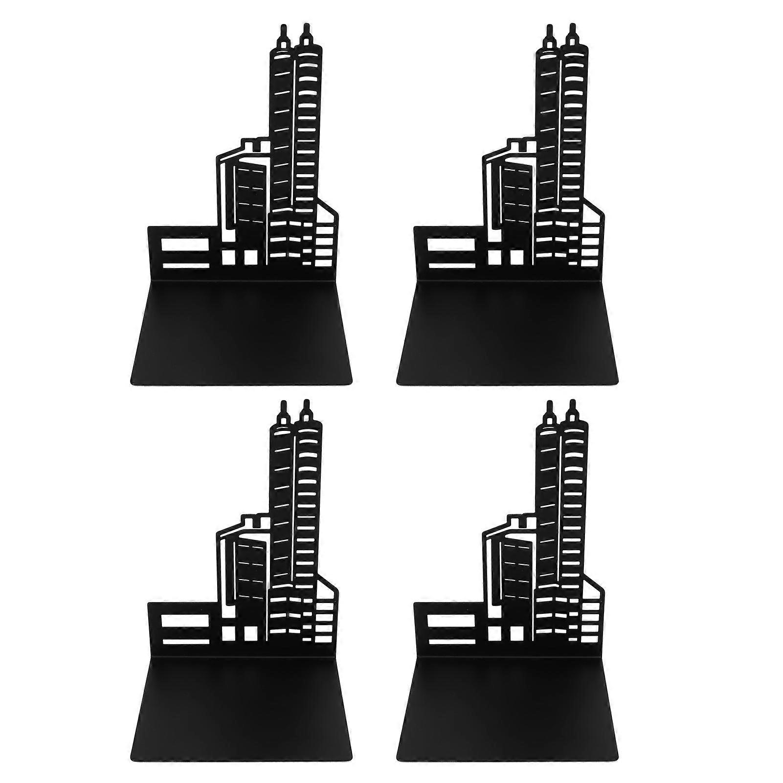 4pcs Book Holders Architectural Style Upright Classic Black Heavy Duty Bookends with 4 Nonslip Foam Pads for Books CD DVD Shenzhen