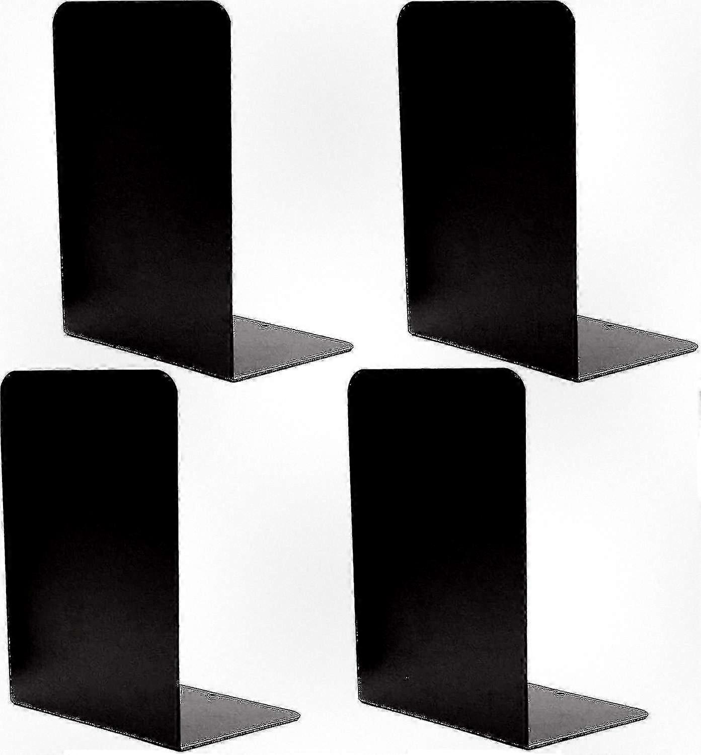 4pcs Black Decorative Metal Bookends with Non-slip Rubber Base for Heavy Books