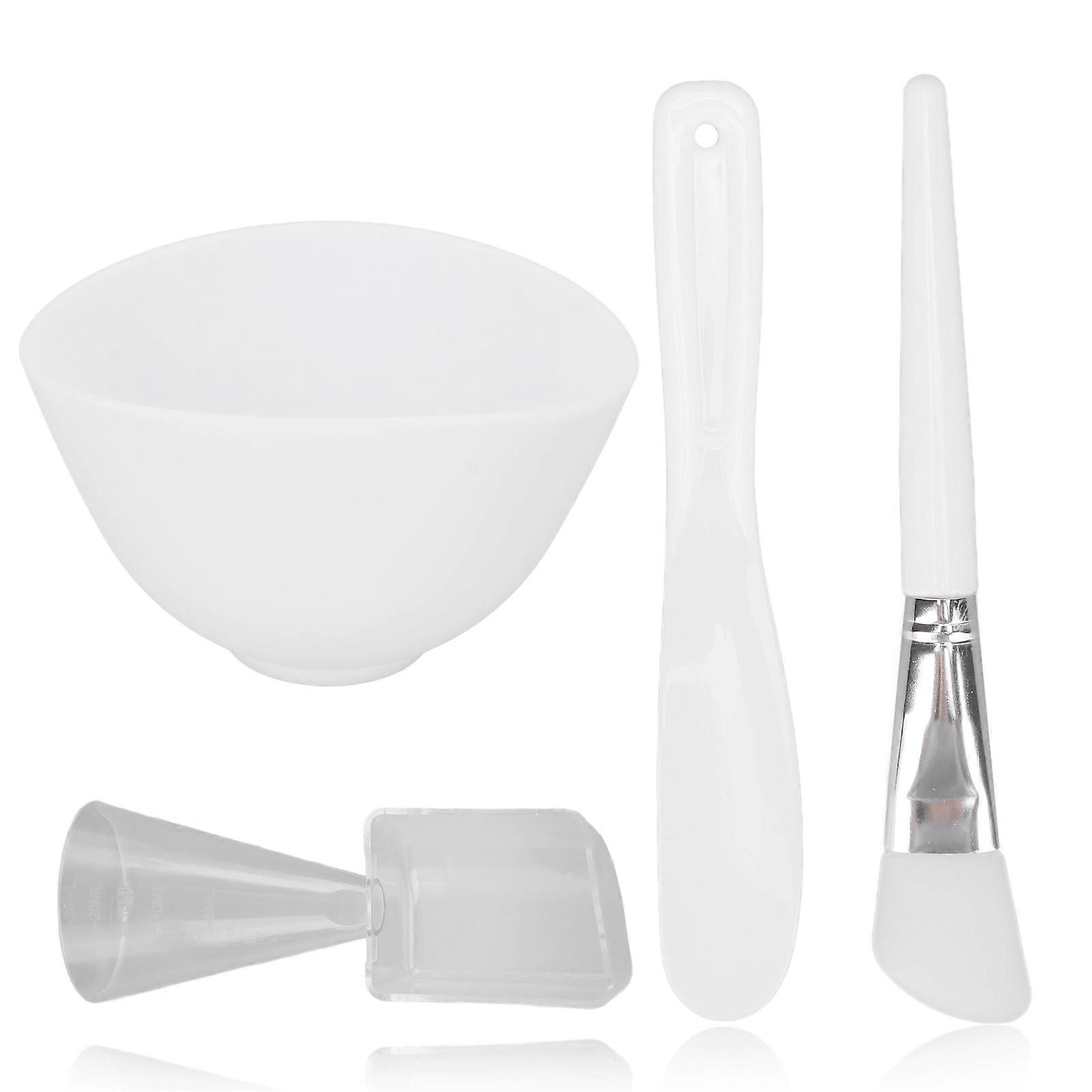 4pcs Face Mask Bowl Set Measuring Spoon Spatula Silicone Brush Washable Skin Mask Applicator White