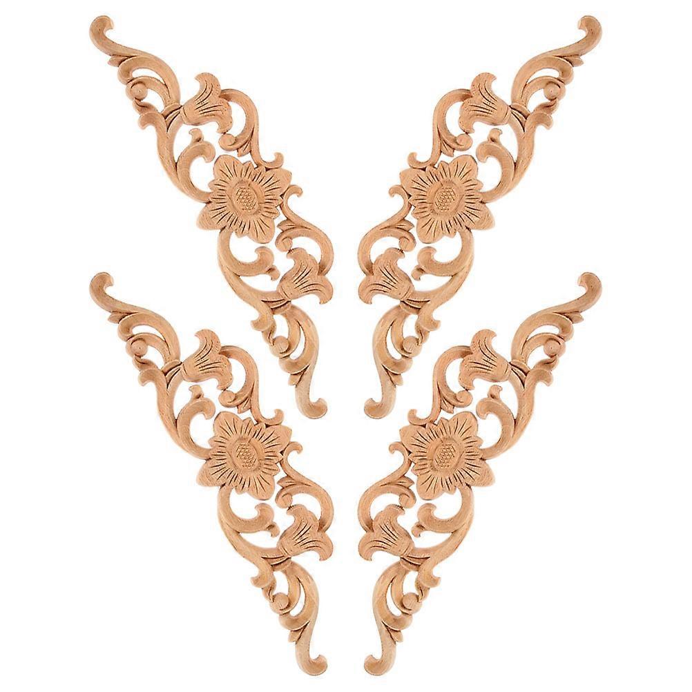 4pcs Beige Rubber Wood Carved Appliques for Home Decor Elegant Design Furniture Embellishments