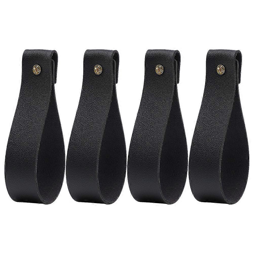 4PCS Bohemian Bathroom Door Hooks, Farmhouse Wall Hooks for Curtains & Lanyards, Black Strap Hangers