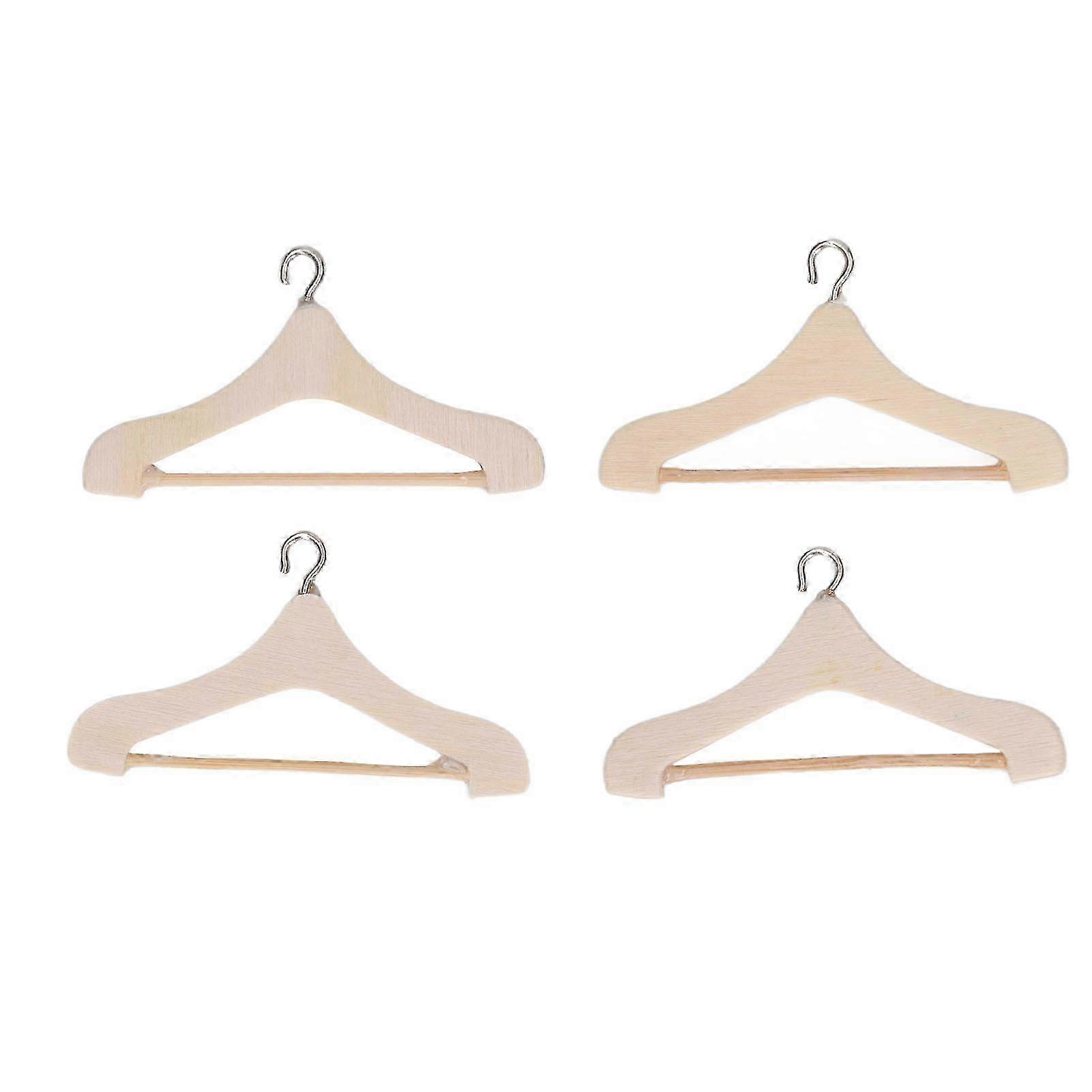4pcs Miniature Coat Hanger 1/12 Scale Vintage Style Portable Triple Wood Dollhouse Toys for Micro Landscape Model