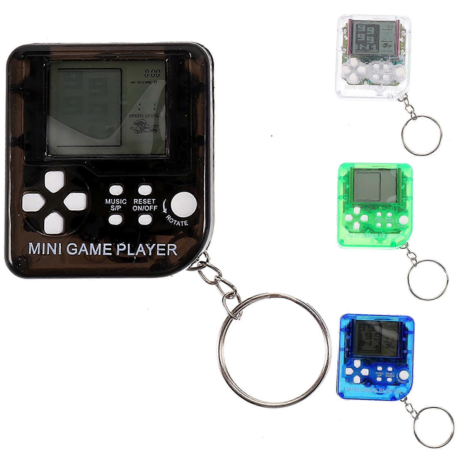 4pcs Mini Video Game Keychains Transparent Handheld Game Machine Pendants in White, Black, Blue, Bright Green for Bag Decor, Keyrings, Game Parties